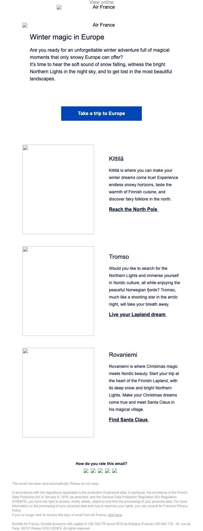 Air France n’a jamais proposé de codes promo. Nous surveillons activement cette boutique et vous envoyons une notification dès que des codes sont disponibles. Avez-vous trouvé un vous-même ? Faites-le-nous savoir !