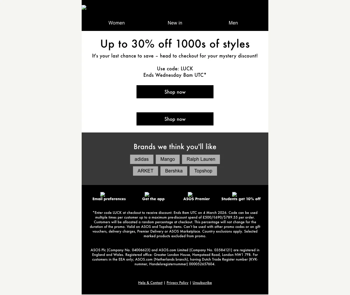 Toute l'année, Soldesduck s'engage à vous trouver les meilleures réductions et codes promo ASOS pour vous aider à économiser sur votre shopping ! Alors n'hésitez plus à nous rendre visite sur cette page pour utiliser votre code réduction sur votre prochaine commande.