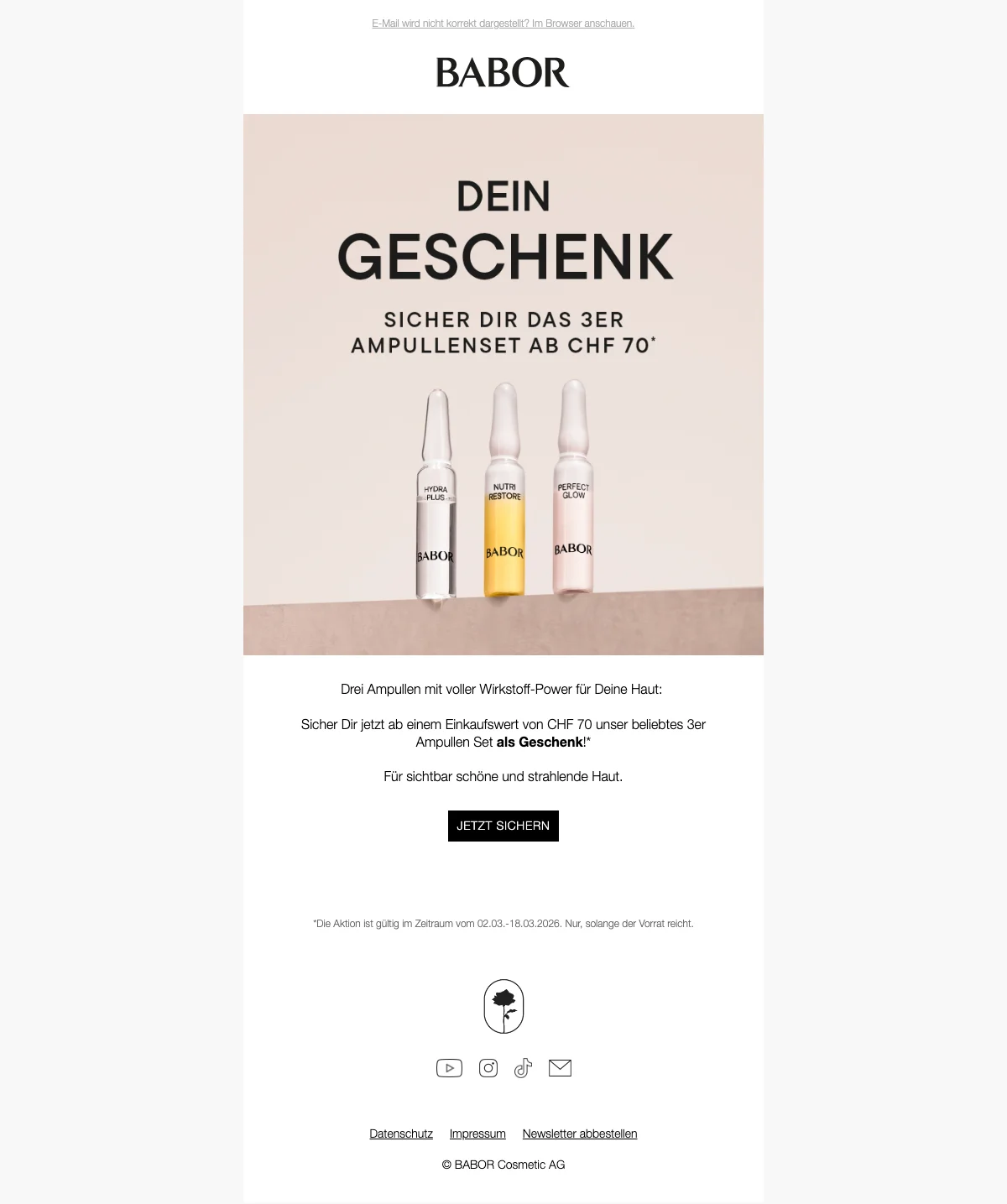 Promo Babor : offres et coffrets cadeaux avec livraison offerte dès CHF 120.- d'achats