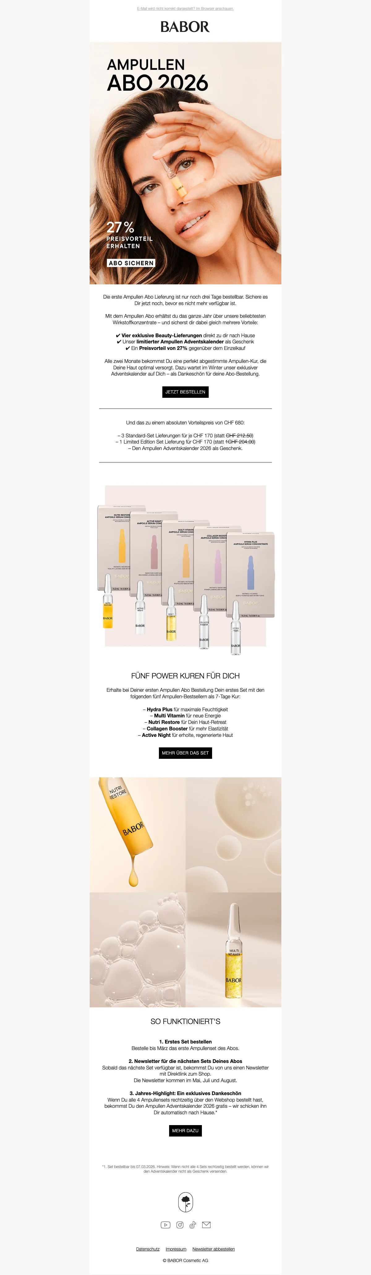 Babor ampoules abonnement 27% de réduction — CHF 680 pour 4 livraisons