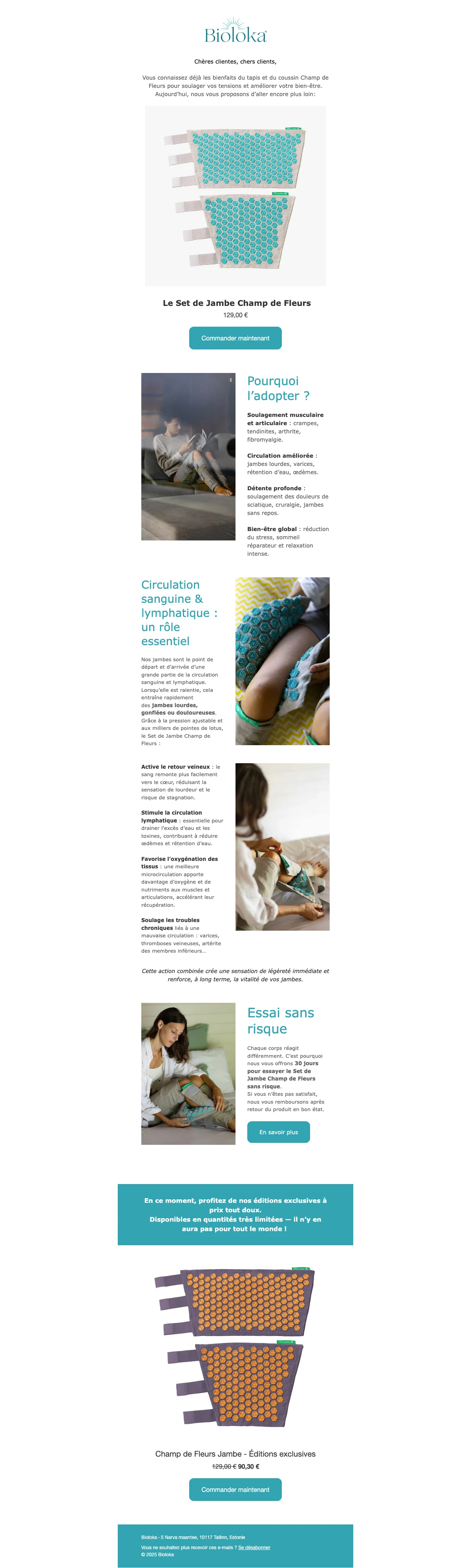 Fondée il y a 4 ans par Alexis Mertens, la société Bioloka (ex Lesmauxdedos) a pour ambition de vous proposer les meilleures méthodes naturelles de traitement des pathologies du dos. Après plus de quinze années passées à s'intéresser aux traitements de santé non intrusifs, le fondateur a souhaité rendre visibles et accessibles sur internet les meilleurs produits permettant de traiter les pathologies de façon non agressive et visant à y remédier sur le long terme. Ces produits sélectionnés avec soin vous aident à soulager vos douleurs au quotidien, de façon douce et naturelle et en s'adaptant au fonctionnement de votre organisme.