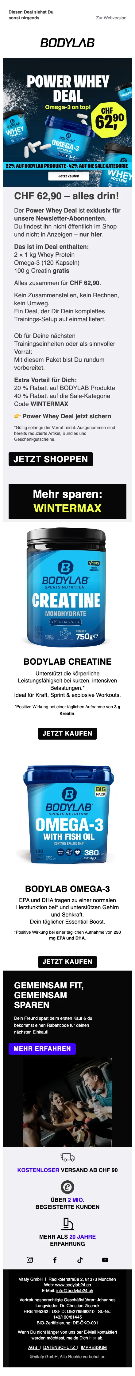 Bodylab 1 kg whey prix spécial CHF 24,50 offre limitée