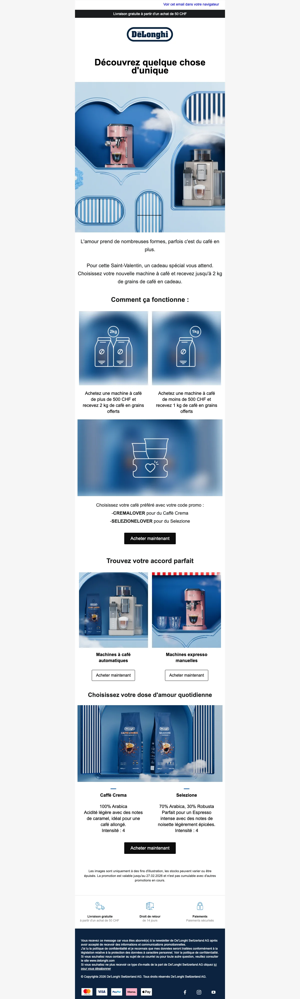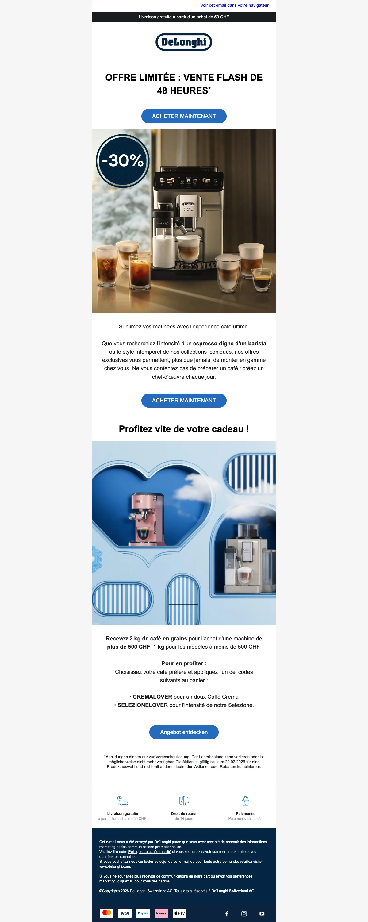 De'Longhi café livraison gratuite à partir de CHF50
