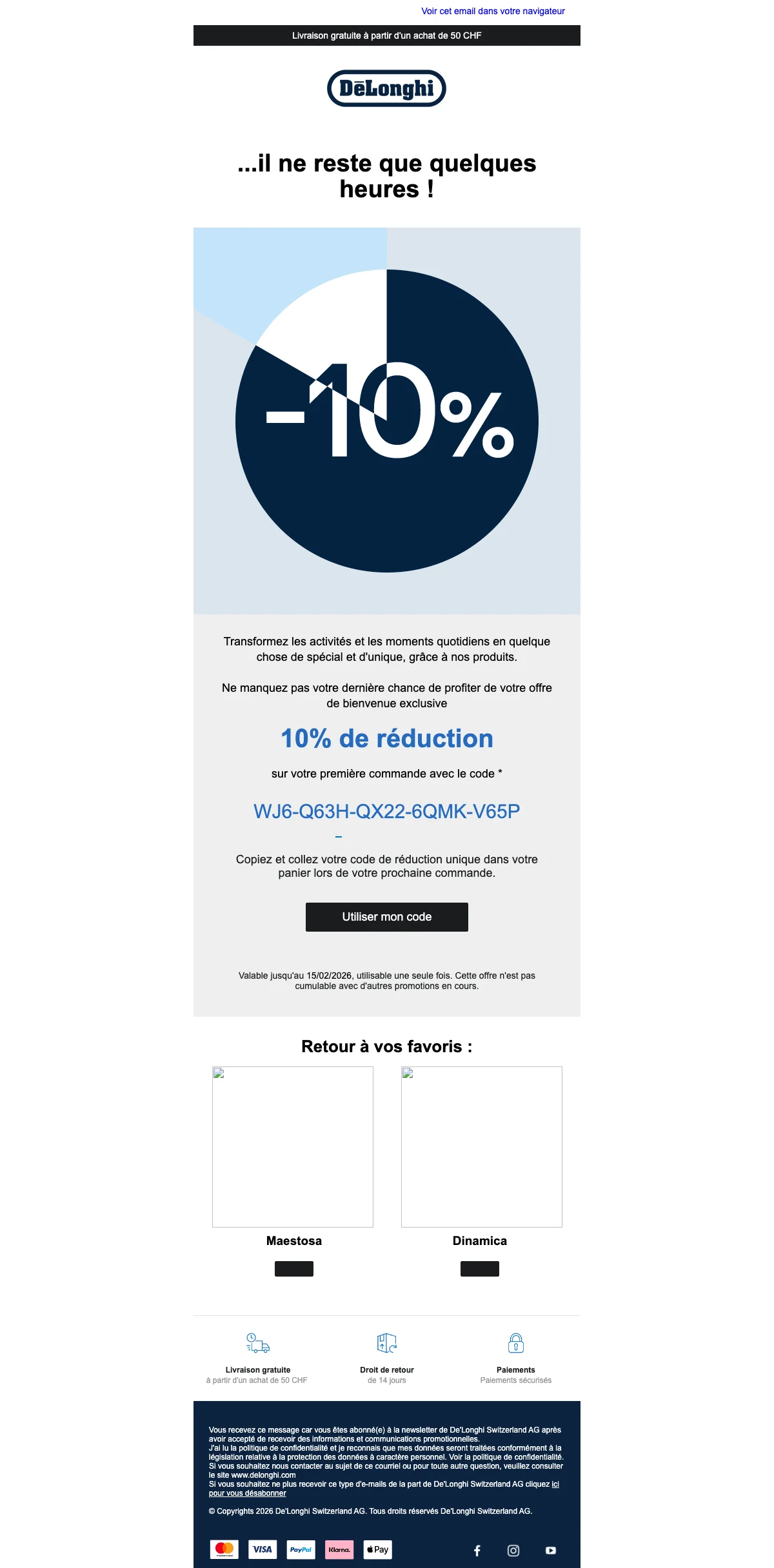 codes promo Delonghi valides mars 2026