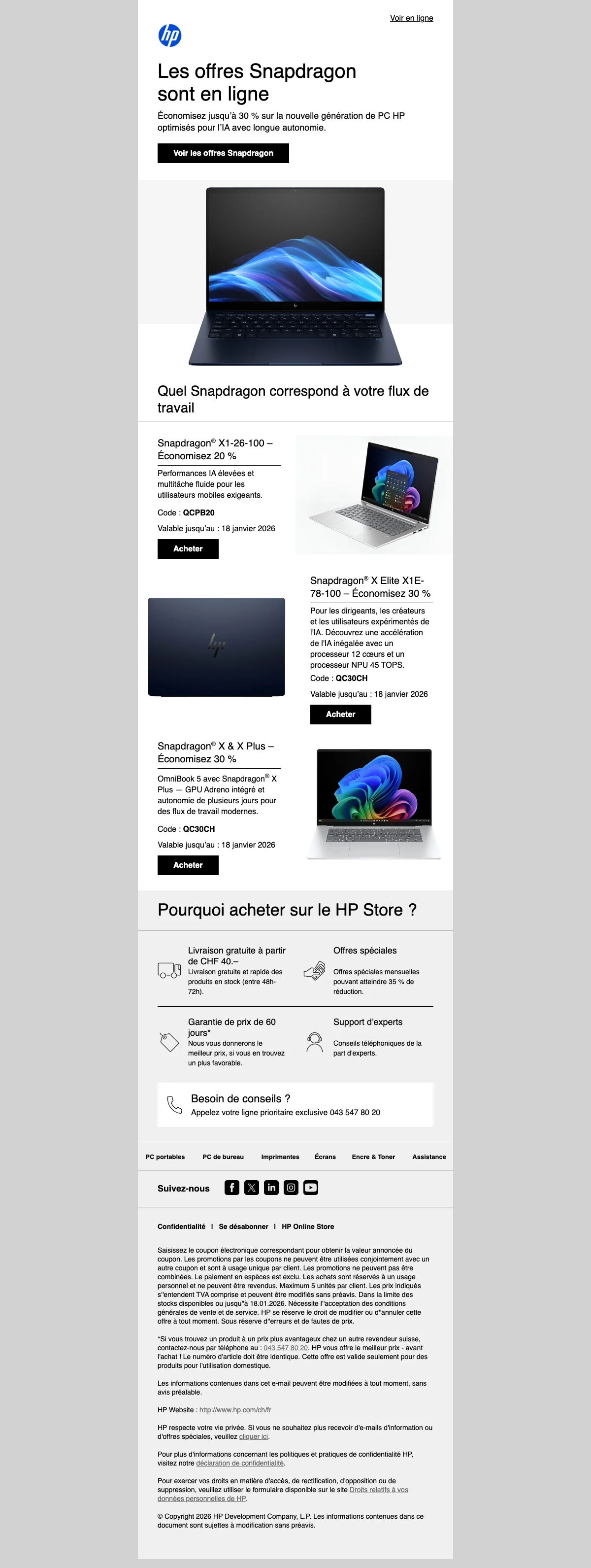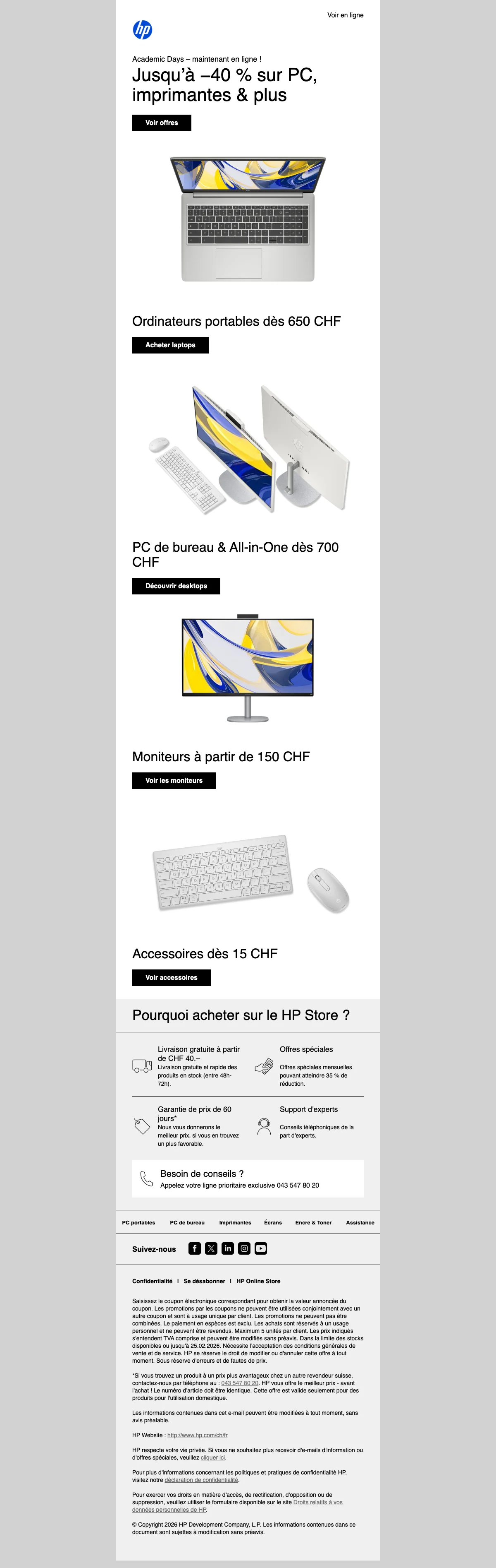 Code réduction HP store suisse Soldes - Mars 2026