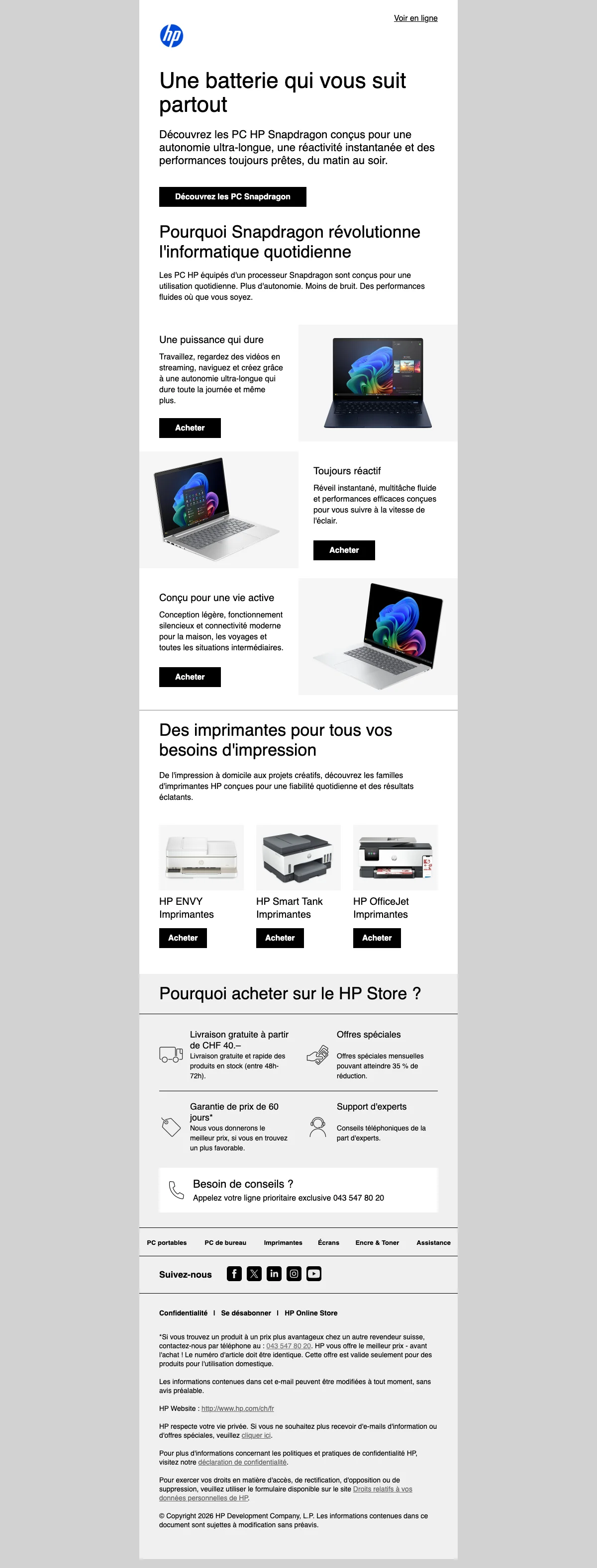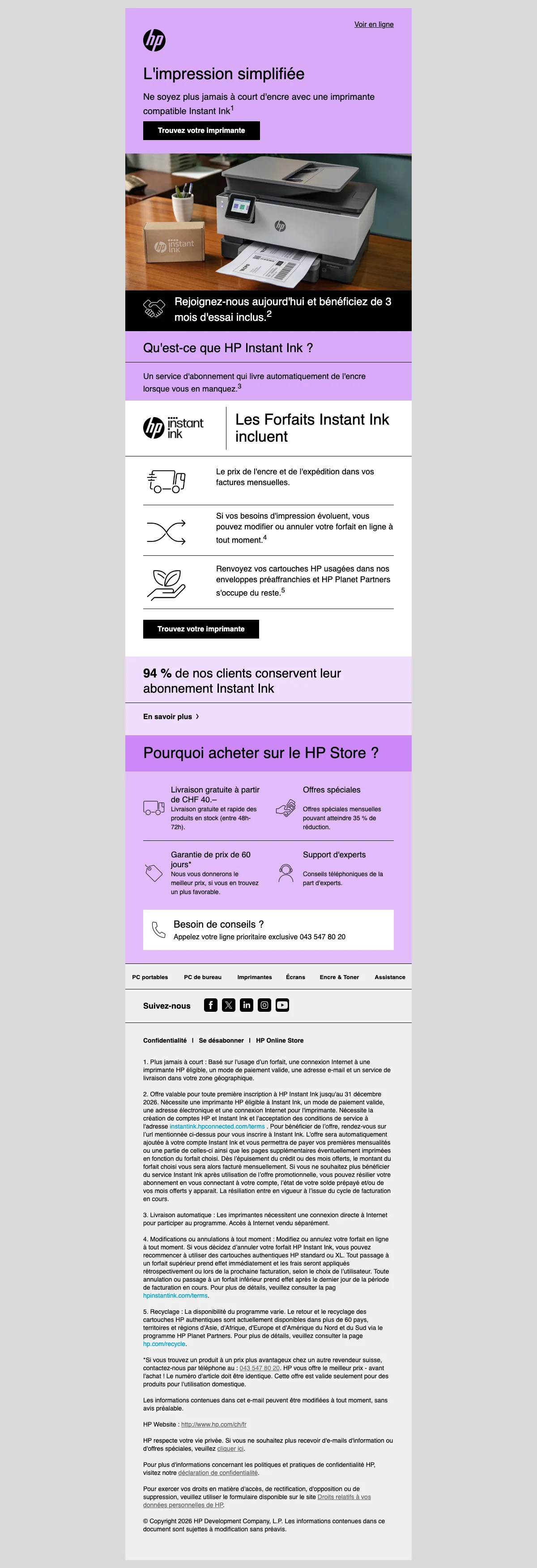 Livraison gratuite HP Suisse