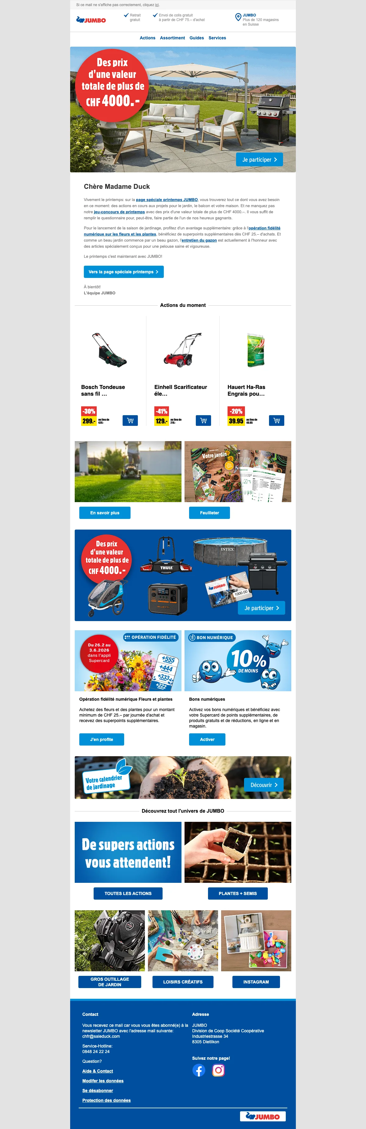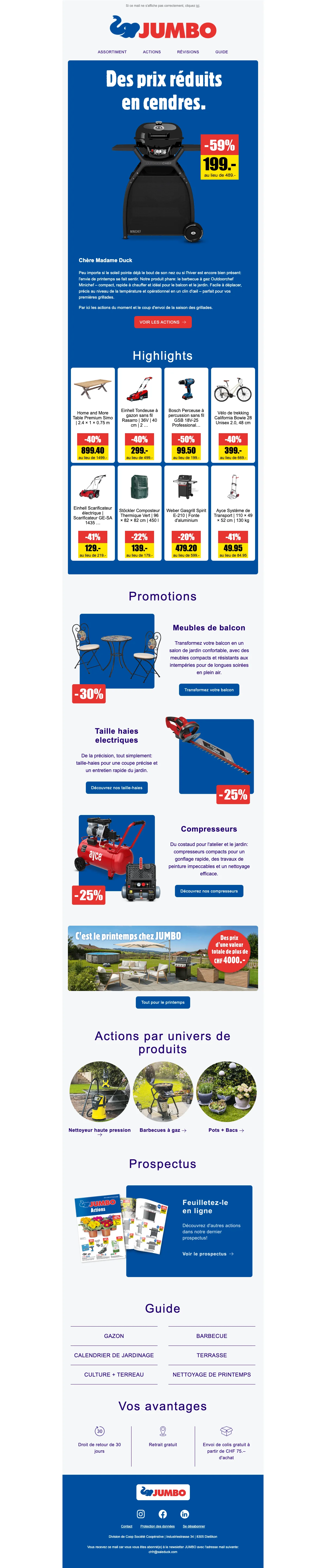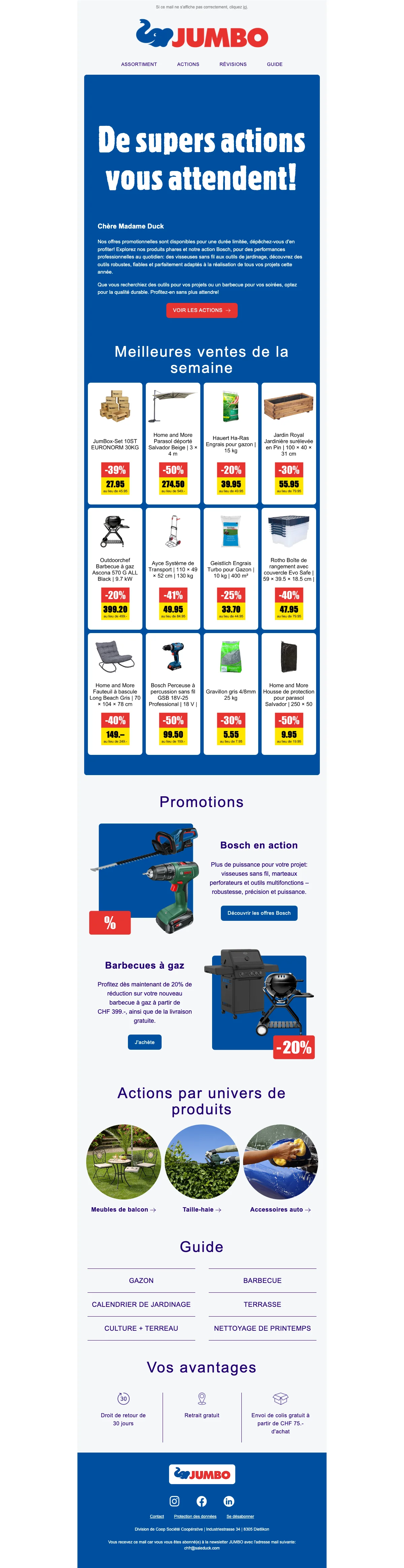 JUMBO actions d'été jusqu'à 50% de rabais sur le jardin