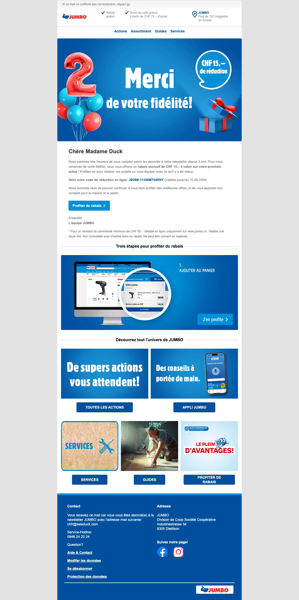 Recevez votre code promo Jumbo de CHF 10.- de réduction sur votre prochain achat