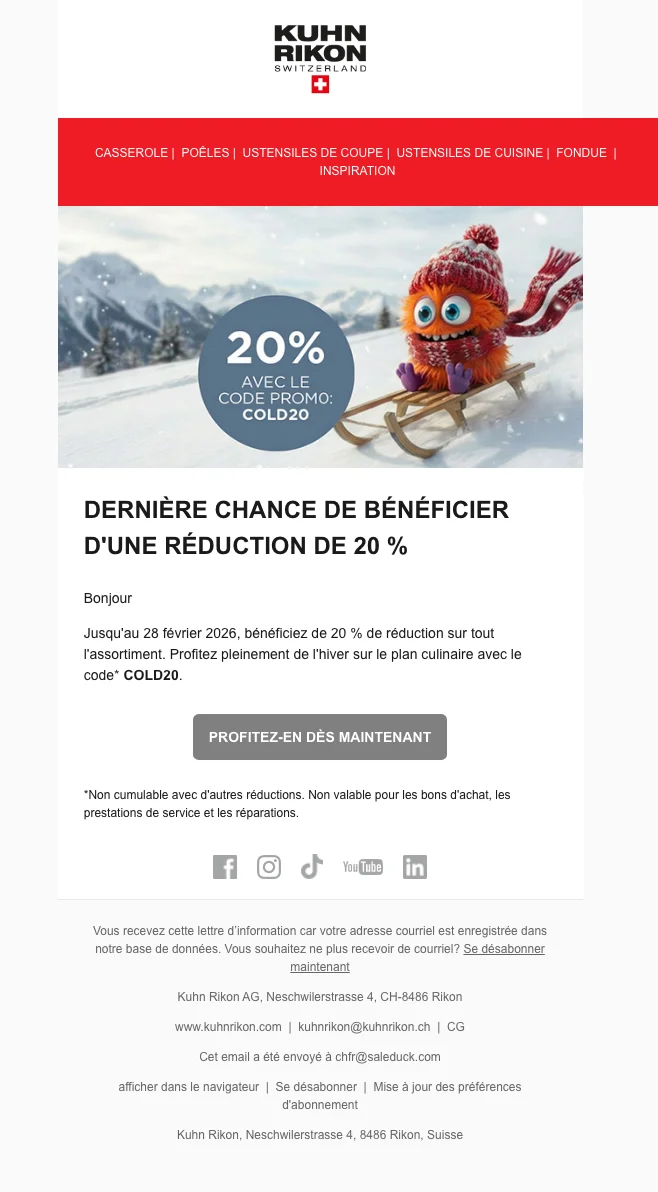 Kuhn Rikon Snow Week 20% de réduction sur tout l'assortiment