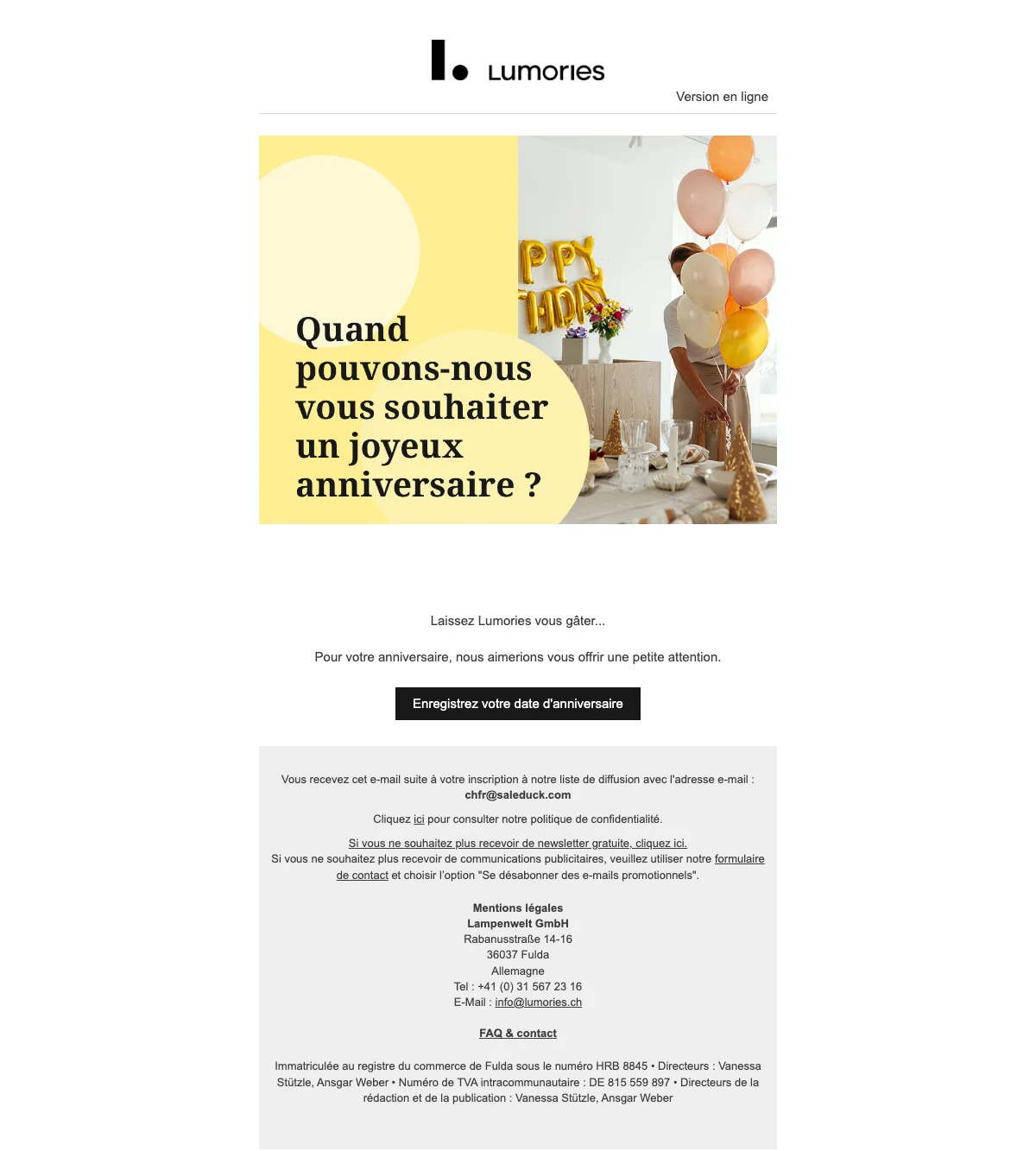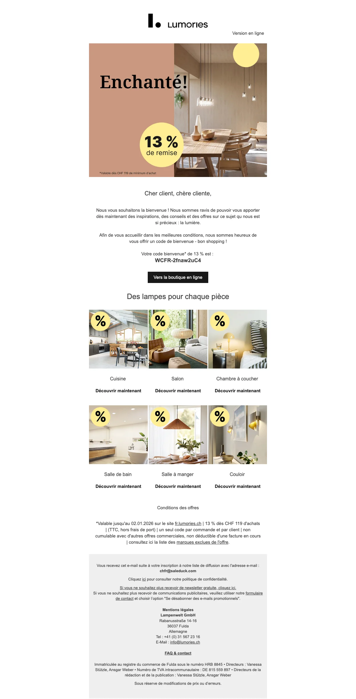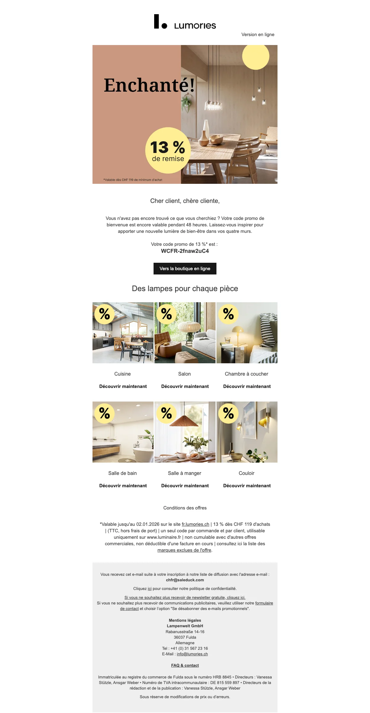 Toute l'année, nous recensons pour vous les meilleures réductions et codes promo Lumories pour vous permettre d'accéder aux meilleures offres ! Rendez-vous sur la boutique sans plus tarder et économiser sur vos futurs achats !
