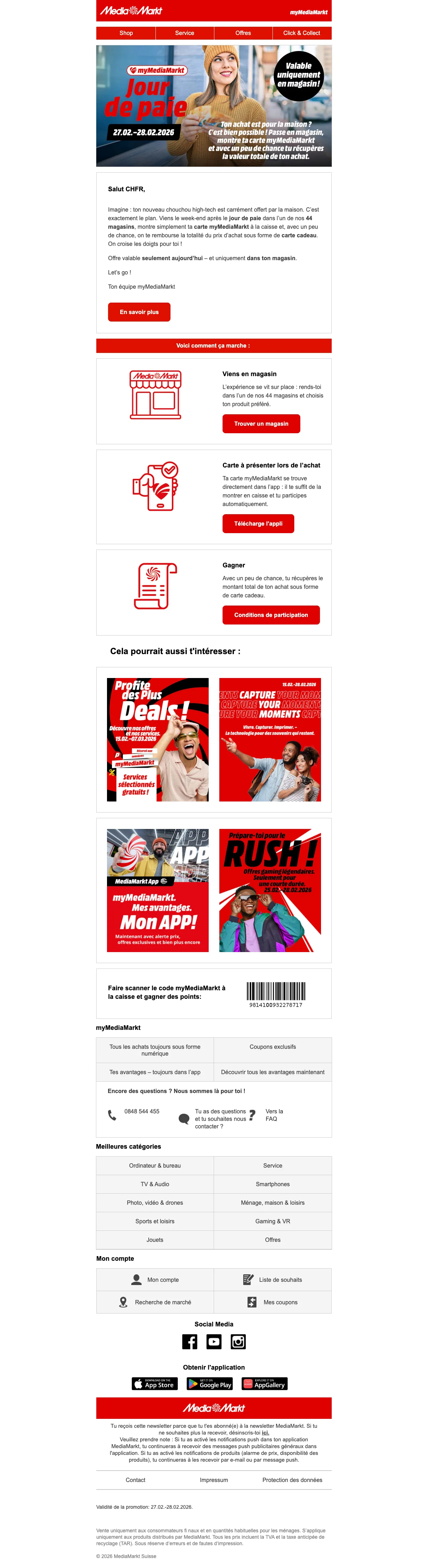 Media Markt est le 1er site Suisse e-commerce spécialisé dans l'électronique. Des milliers de produits high-tech se trouvent sur la boutique en ligne et des promotions sont disponibles toutes les semaines, pas de doute c'est ici que cela se passe !