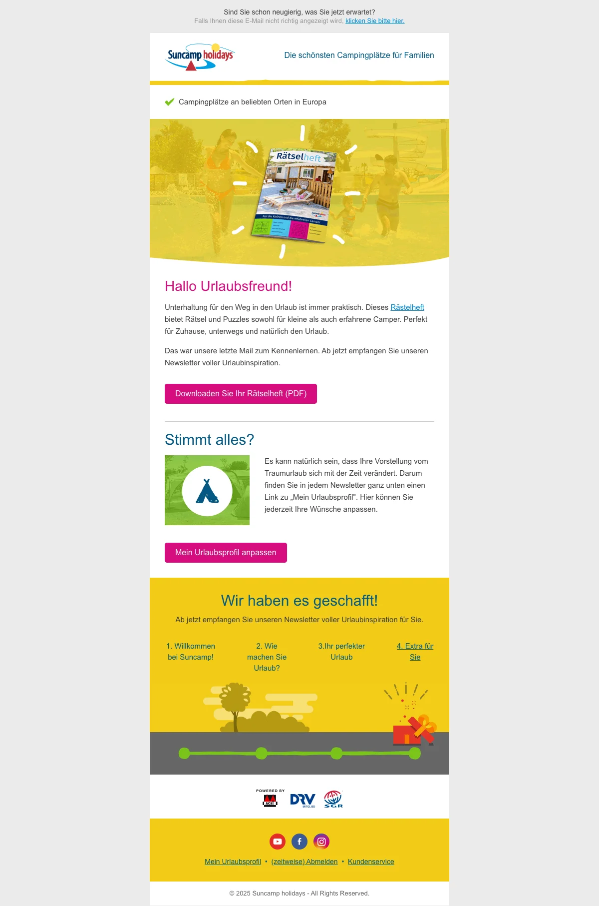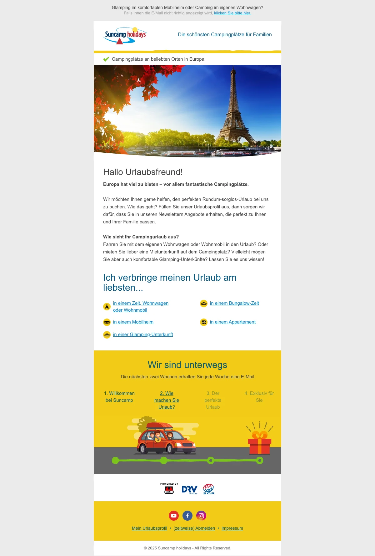 Réservez vos vacances de rêve en Italie avec Suncamp et profitez de 20% de réduction sur votre séjour. Explorez les magnifiques paysages de la Vénétie ou de la Toscane avec des offres adaptées à toute la famille. Détente garantie avec des campings situés à proximité de plages ou équipés de piscines.